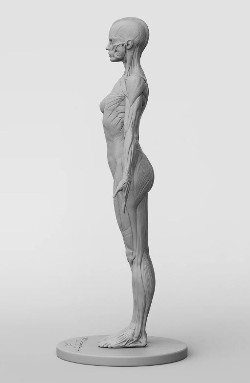 Được điêu khắc bởi Dan Crossland cho 3dtotal, mô hình nữ được sản xuất theo tiêu chuẩn tương tự như mô hình nam ban đầu, và cũng theo tỷ lệ. Chúng tôi tính toán rằng mô hình nữ của chúng tôi sẽ thấp hơn mô hình nam khoảng 5% trong thực tế, nên chiều cao của cô ấy là 265mm (chưa bao gồm đế) (mô hình nam của chúng tôi là 297mm, chưa bao gồm đế). Được đúc bằng cùng một loại nhựa resin màu xám trung tính, cả hai mô hình sẽ là những người bạn đồng hành tuyệt vời trên bàn làm việc!