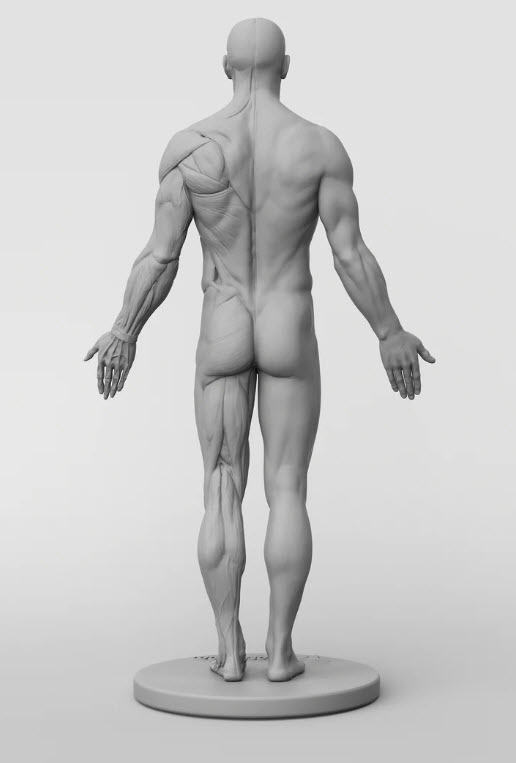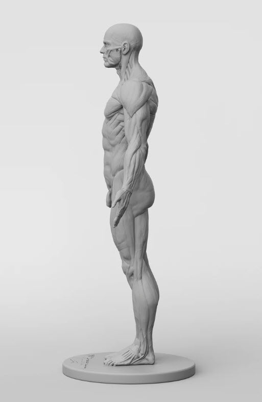 Mô hình này được điêu khắc cho 3dtotal bởi Federico Scarbini và Dan Crossland, được in bằng máy in 3D chất lượng hàng đầu của Ownage, sau đó được đúc bằng nhựa resin màu xám xanh để dễ dàng nhìn thấy và hiểu sự biến đổi của bề mặt và sự chuyển động của cơ bắp. Một nửa của mô hình thể hiện toàn bộ làn da, trong khi nửa còn lại là phần giải phẫu rõ ràng và chi tiết, cho thấy cấu trúc cơ bắp.